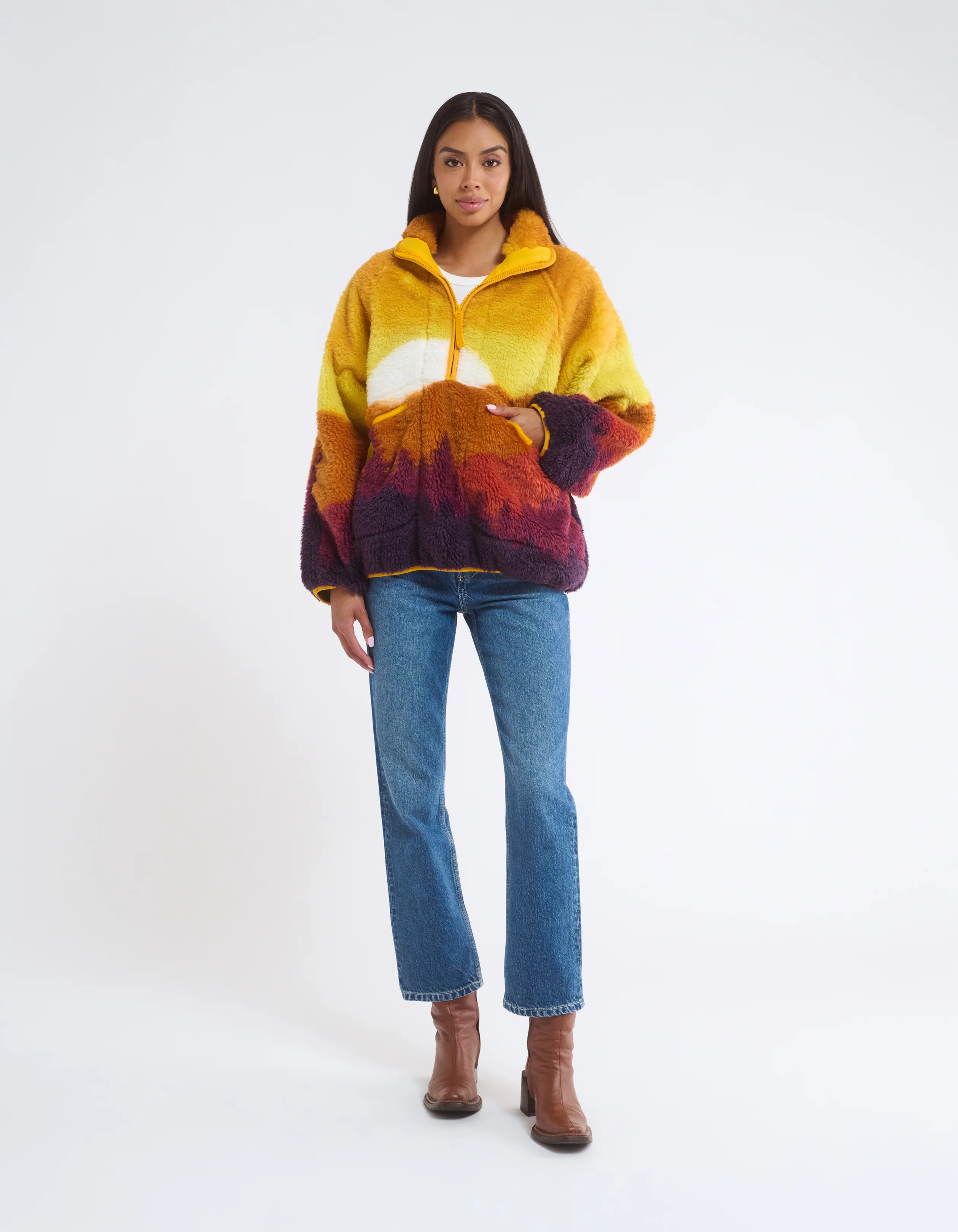 Made for those at home at high-altitudes and inspired by vintage winters in Sun Valley, this sherpa jacket brings warmth with a side of nostalgia. Featuring a half-zip front and oversized pockets, it's built for long plane rides, alpine hikes, and quiet nights in a log cabin.